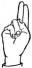 На ћирилици написано ЈАДРАНКО КНЕЖЕВИЋ састоји се из 16 слова [?]. Исписано ћириличном једноручном азбуком за глувонеме: